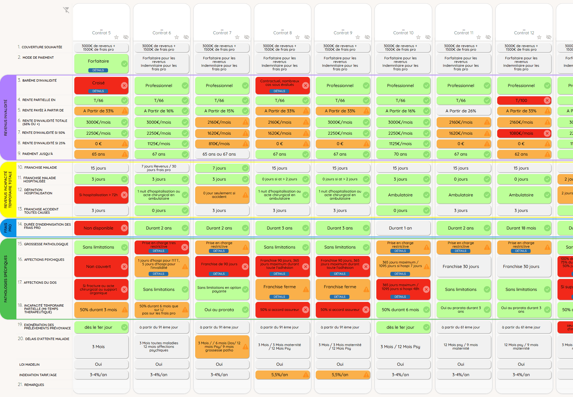 Découvrez ici tous les critères comparés dans notre outil (barèmes, exclusions, rentes, durée…)